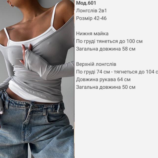 Лонгслів 2 в 1 з комбінованим і спокусливим вирізом відмінно доповнить ваш стиль і може чудово поєднуватися з будь-якими речами з вашого гардеробу.